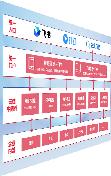对协作平台提供支持服务,,支持企业应用与协作平台对接,,包含组织同步、、消息集成、、、待办集成等。。支持目前主流的协作平台:钉钉、、、、企微和飞书。。。。